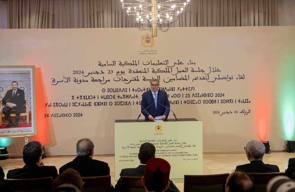 | رئيس الوزراء عزيز أخنوش خلال مؤتمر صحفي في ديسمبر 2024 (وكالة الأنباء الأوروبية EPA / جلال مرشيدي) |